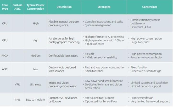 Figure 2. Comparing core types for edge AI hardware |