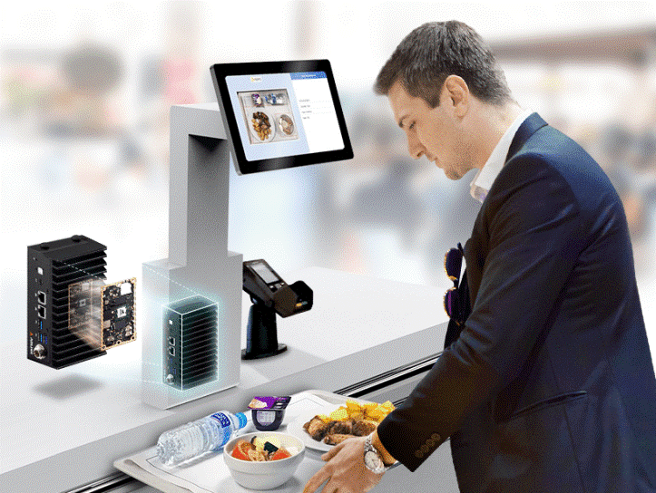 At the checkout of a restaurant or store, machine vision can identify the items in a single scan and display the total due–in less than 1.5 seconds with ADLINK DLAP-211-JT2.