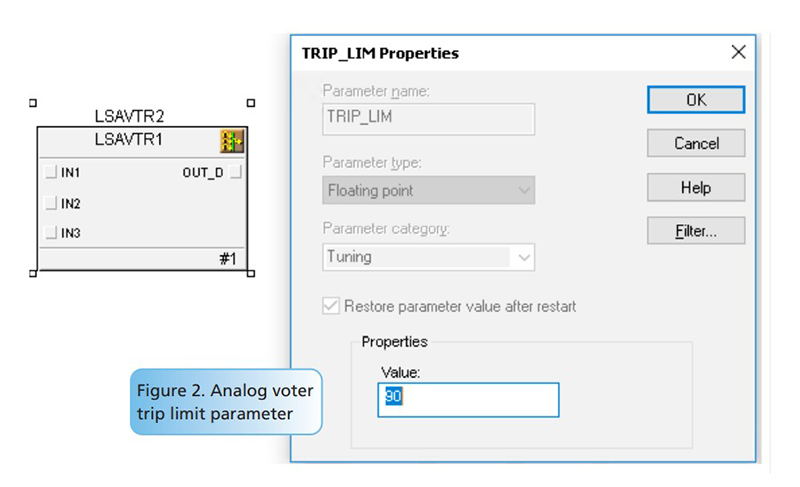 All the traditional programming required for implementing an analog voting function has been replaced by a few configuration settins. In the same way, there is a discrete voter function block with similar functionality.