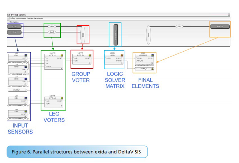 Each SIF contains a combination of sensors, voting arrangements, logic solvers, and final elements. Those elements defined in exSILentia are mapped to DeltaV SIS function blocks