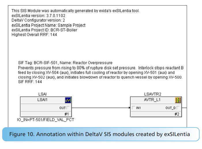 Annotations within SIS modules One key feature is related to the ability to add proper annotations within the safety logic. exSILentia automatically adds relevant information that facilitates traceability to the SRS and increases logic readability (Figure 10).