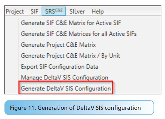 Once the SIF definition and the design SRS are completed, the DeltaV SIS configuration can be generated using the SRS C&E menu in exSILentia (Figure 11).