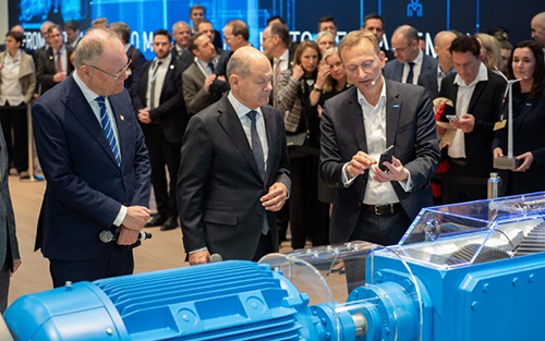 Chancellor Scholz was impressed by the company's innovative strength and interested in the customization of drive solutions.